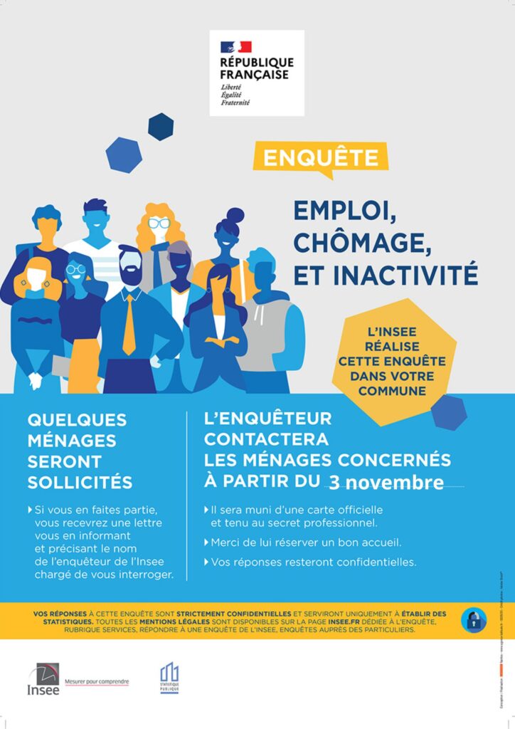 ✔️Un enquêteur de l’INSEE prendra contact avec les personnes des logements sélectionnés, du 3 au 23 novembre 2025. Il sera muni d’une carte officielle l’accréditant.