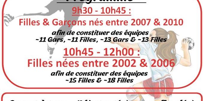 Débutant(e) ou confirmé(e), né entre 2002 et 2010 (pour les filles) et entre 2007 et 2010 (pour les garçons), découvrez ou redécouvrez le handball et le club local le samedi 20 avril à la halle des sports Jean Poudoulec.