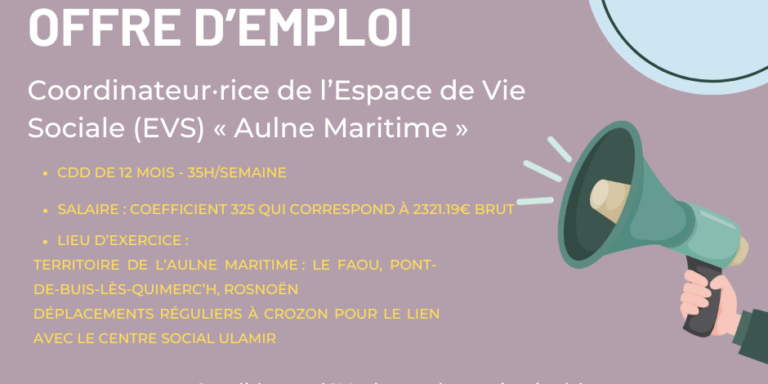 🔎Recherche d’un coordinateur-trice de l’Espace de Vie Sociale « Aulne Maritime »📣