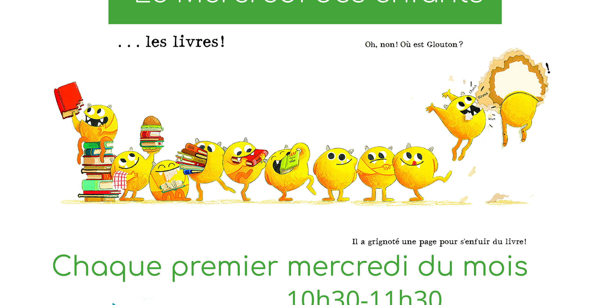 Nous invitons les familles à la médiathèque tous les 1er mercredis* du mois de 10h30 à 11h30.